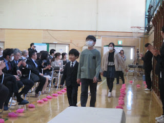 入学式に出席する6年生に「一日の流れ」が示されています。