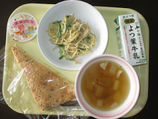 6年生最後の給食は、6年生に人気だったラーメンサラダ、黒ゴマパイにしたので、
